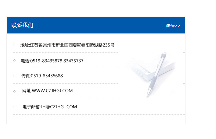 地址:常州市新北區友邦商務大廈1幢16、17層  電話:0519-85101652  傳真:0519-85112595  郵編:213022  網址:www_cz-jiayue_cn.dyslcb.com  郵箱:xiajifengaa@163.com